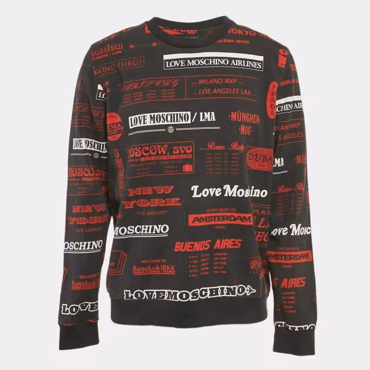 مملوكة مسبقًا سويتشرت لوف موسكينو تريكو قطن أسود مطبوع مقاس كبير جدًا