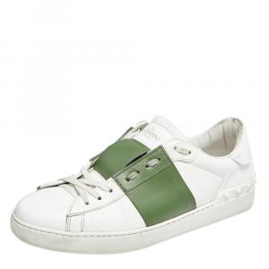 حذاء رياضي فالنتينو بونس جلد أبيض مزين ڨي أل تي إن مقاس 43