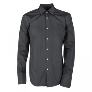 قميص بوس باي هوغو بوس جاكس قطن رصاصي بأكمام طويلة أزرار أمامية مجسم L