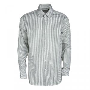 قميص بوس باي هوغو بوس مكسم قصة إعتيادية قطن مخطط أبيض وأخضر زيتوني XXL