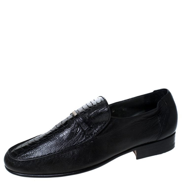 حذاء لوفرز مورشي سليب بحواف جلد نعام وجلد أسود مقاس 41