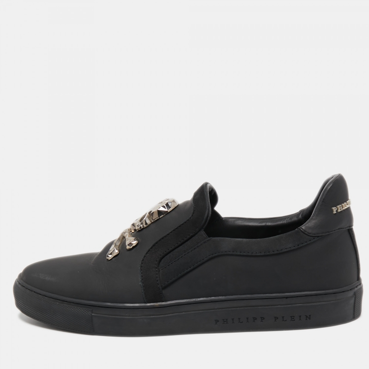 Philipp Plein Black Leather Skull Slip On Sneakers Size 41