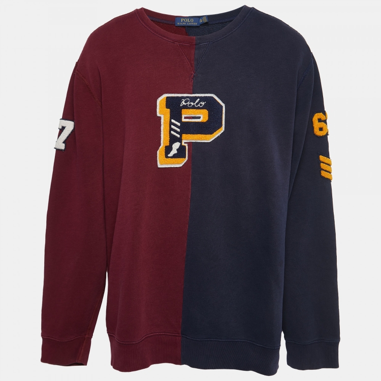 Polo Ralph Lauren Navy Blue/Red Embroidered Cotton Knit Crew Neck Sweatshirt XXL