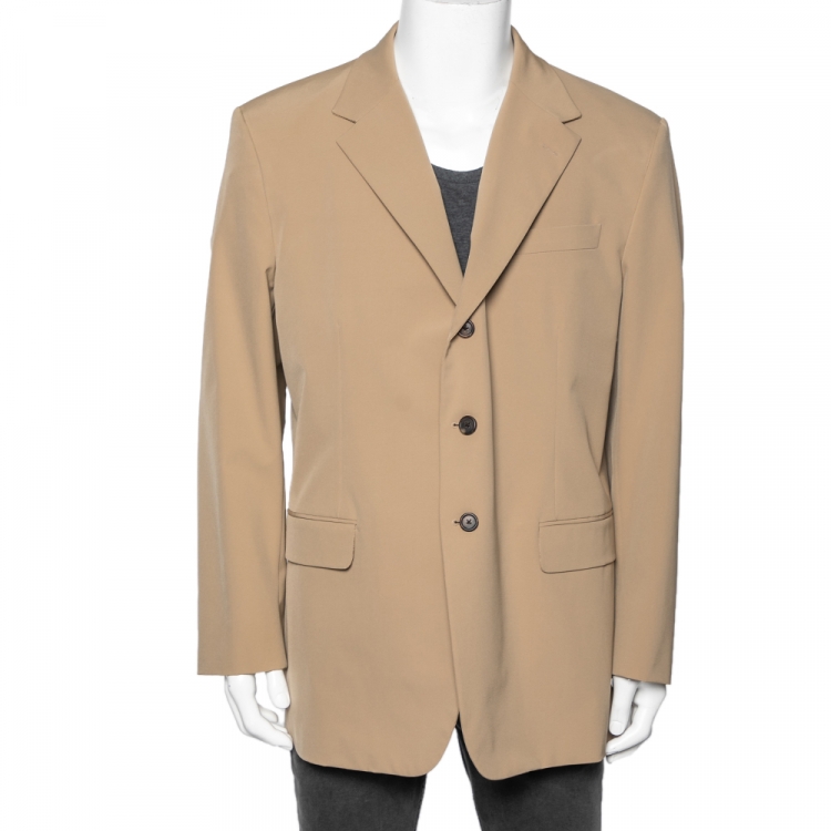Pre Owned جاكيت بليزر برادا قماش صناعي بيج أزرار أمامية مقاس كبير جداً جداً جداً جداً (اكس اكس اكس اكس لارج)