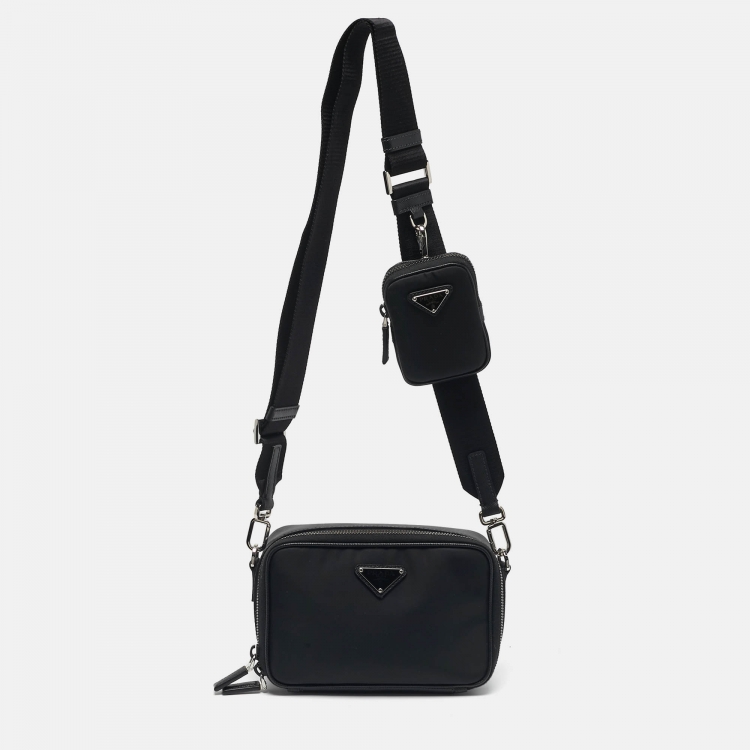 Pre Owned حقيبة كروس بودي برادا جلد سافيانو لوكس أسود ونايلون بريق