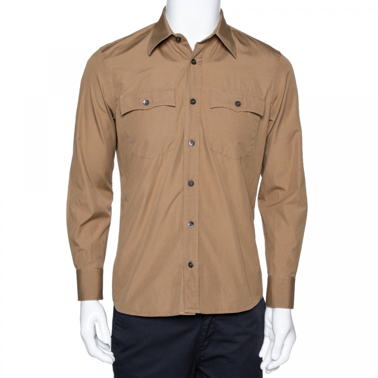 Pre Owned قميص برادا أكمام كاملة سفاري ستايل بوبلين قطن كاكي  M