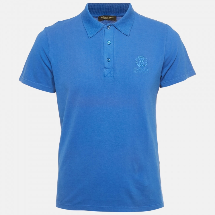 تي شيرت روبيرتو كافالي بيتشوير بتطريز الشعار باللون الأزرق مصنوع من القطن مقاس متوسط - ميديم