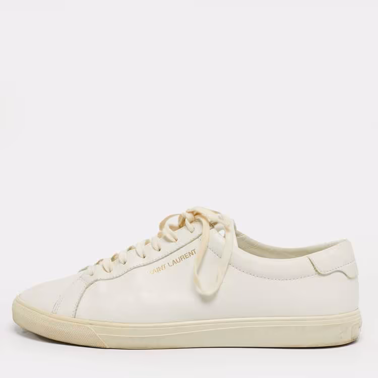 Pre Owned حذاء رياضي سان لوران أندي جلد أبيض حافة منخفضة مقاس 42