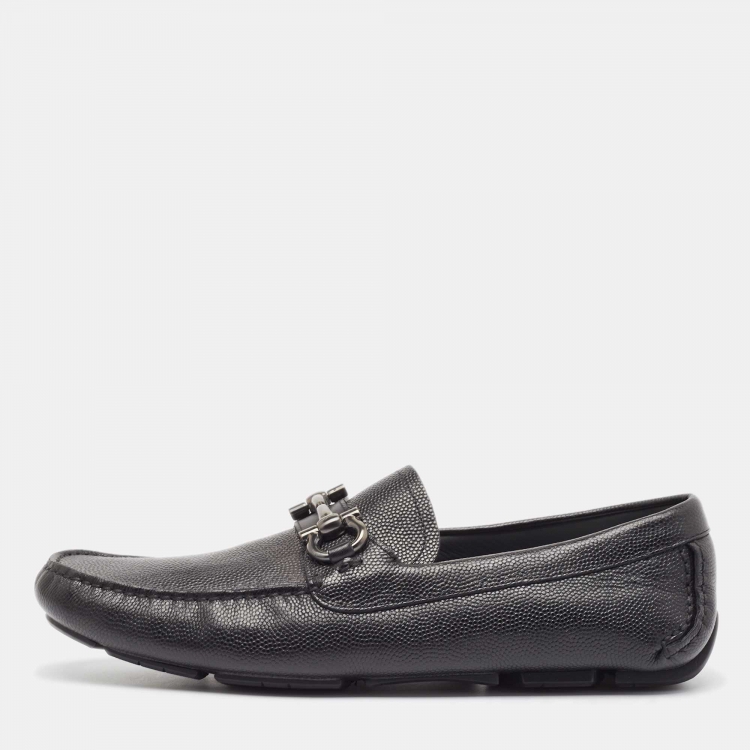 Salvatore Ferragamo Black Leather Gancini Slip On Loafers Size 44.5