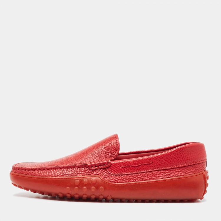 Pre Owned Tod's Red Leather Slip On Loafers Size 41