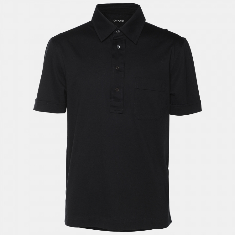 تُوم فورد تي شيرت بولو قُطْني أسود مقاس وسط