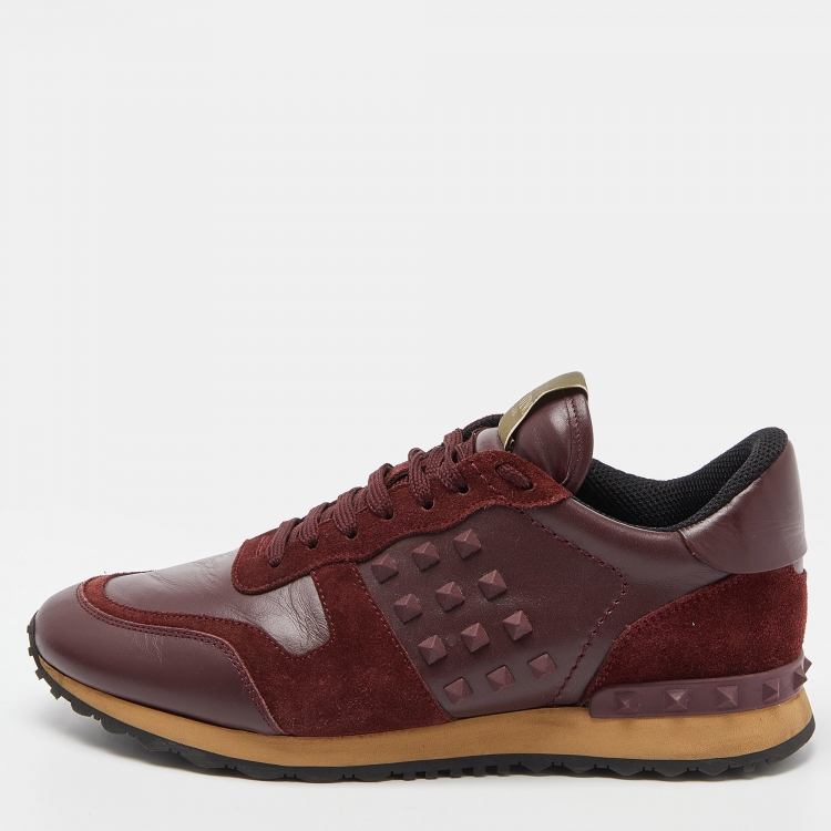 Pre Owned حذاء رياضي فالنتينو روك رانر جلد وكانفاس مطبوع ثلاثي اللون مقاس 43