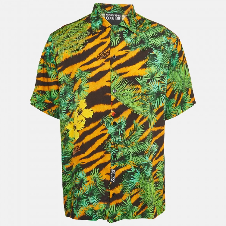 Versace Jeans Couture Green Jungle Print Crepe Short Sleeve Shirt XL