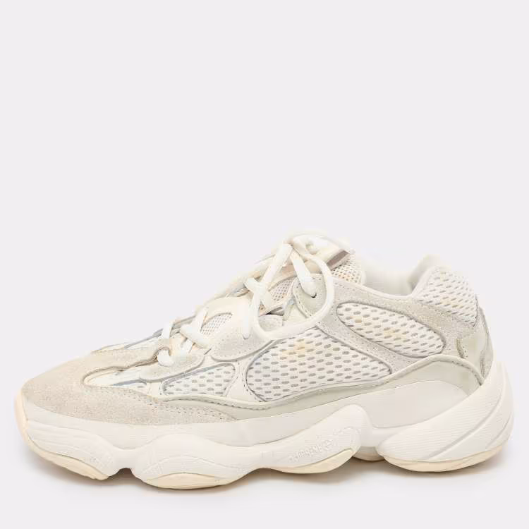 Pre Owned حذاء رياضي ييزي × أديداس 500 ييزي سويدي وشبكي كريمي 'بعظام بيضاء' منخفض القصة مقاس 36