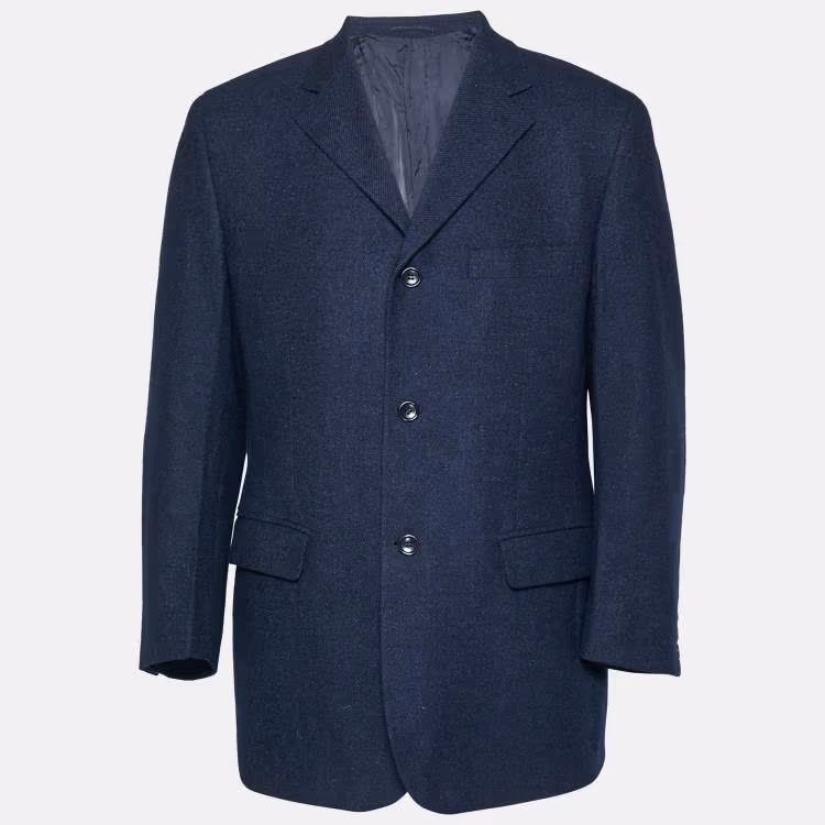مملوكة مسبقًا بليزر صوف مزيج أزرق داكن سان لوران مقاس كبير
