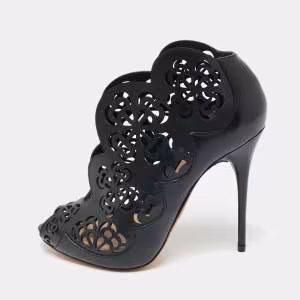 حذاء بكعب عالي كريستيان لوبوتان جلد وبوق شعر العجل أسود مقدمة مفتوحة مقاس 37