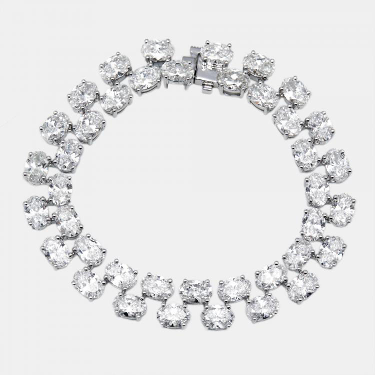 Pre Owned سوار من الذهب الأبيض عيار 18 بألماس معملية بيضاوي بوزن 20.8 قيراط