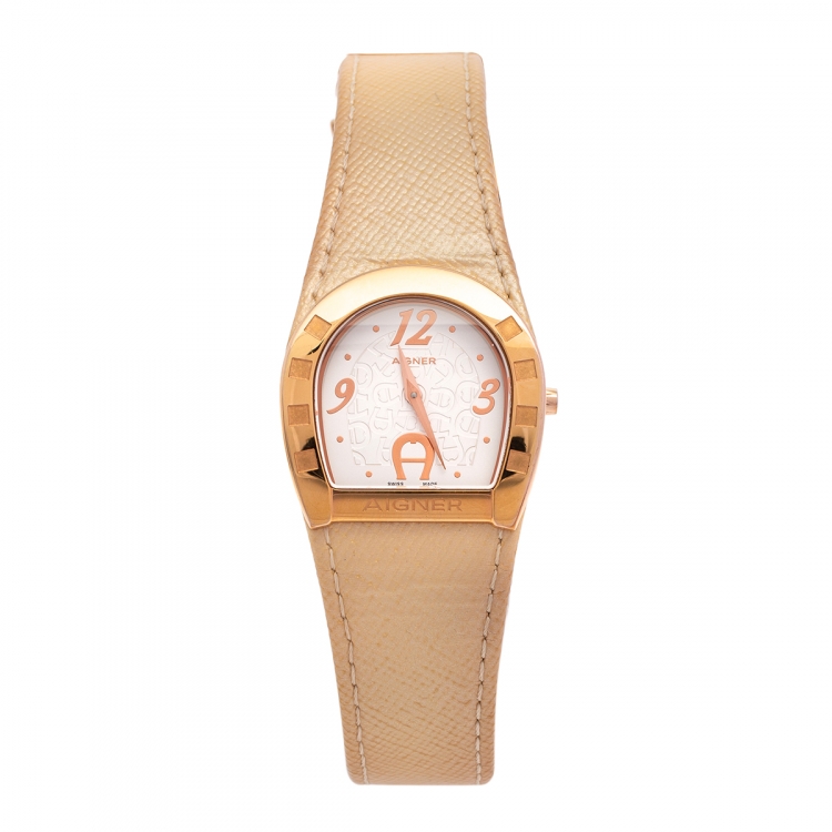 مملوكة مسبقًا ساعة يد نسائية أيغنر كابري أيه19200 جلد ستانلس ستيل مطلي ذهب أبيض 30 مم