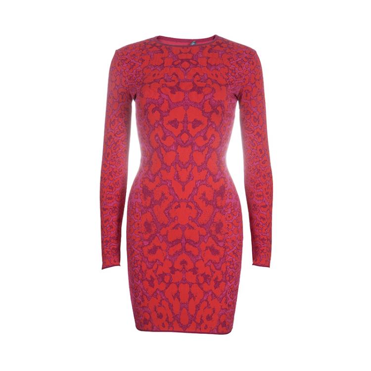 فستان بنسل أليكساندر ماكوين نقش فهد وردي وأحمر XS
