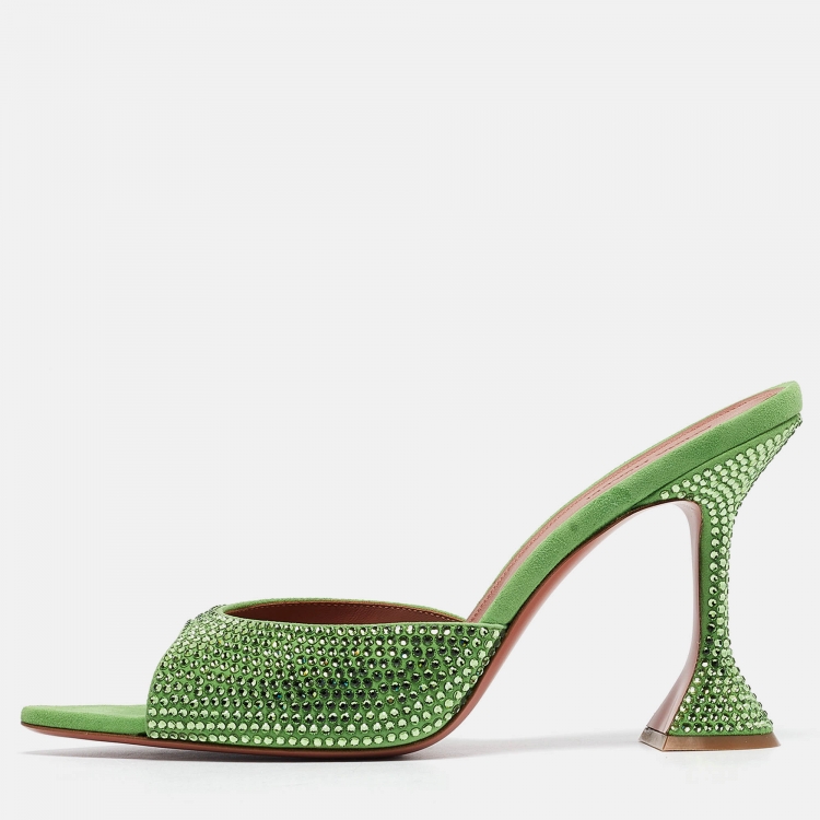 Pre Owned صندل سلايد أمينة معادي كارولين سويدي أخضر مزخرف كريستال مقاس 41