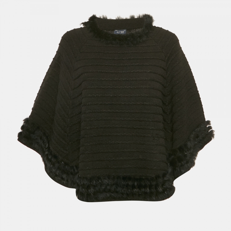 بونشو أرماني جينز أسود بحافة فرو الأرنب محبوك صغير (سمول)
