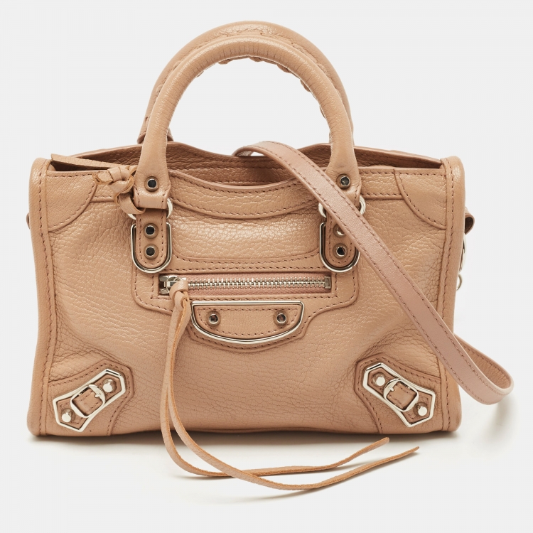 حقيبة يد بالنسياغا سيتي حافة معدنية نانو جلد بيج