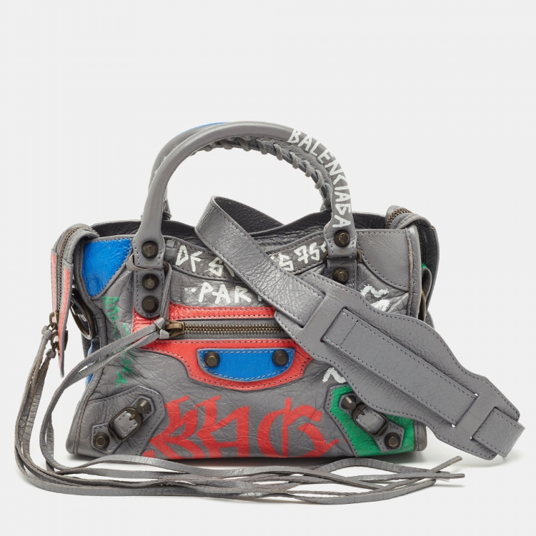 مملوكة مسبقًا حقيبة يد بالنسياغا ميني جلد غرافيتي غريس بايرايت كلاسيك سيتي RH