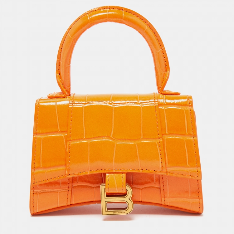 Pre Owned حقيبة بالنسياغا أورغلاس جلد نقش تمساح بيج بسلسلة ميني