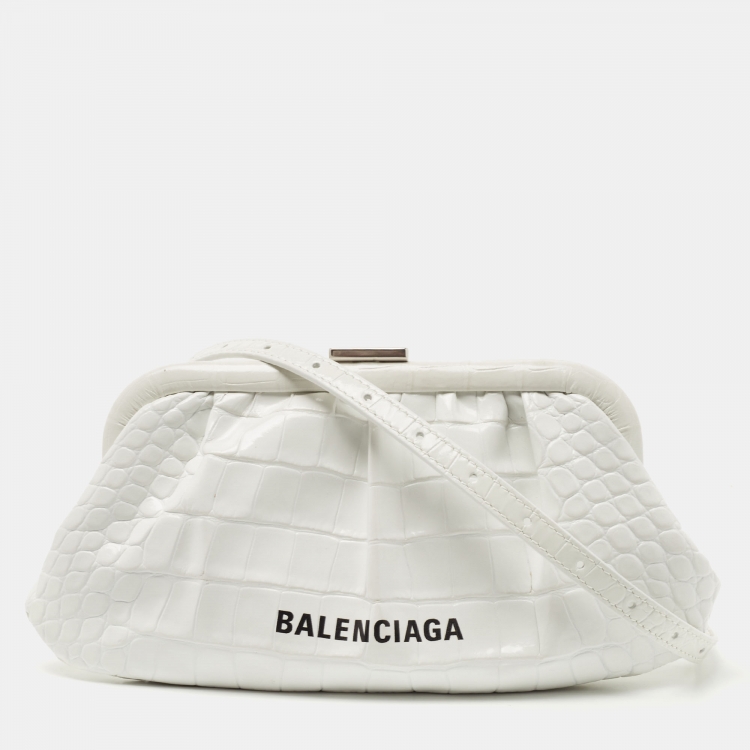 Balenciaga White Croc Embossed Leather XS Cloud Clutch Bag