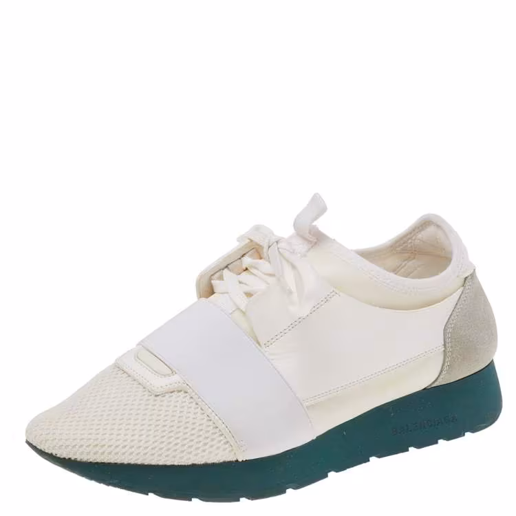 Pre Owned حذاء رياضي بالنسياغا ريس رانر شبك وجلد أبيض مقاس 39
