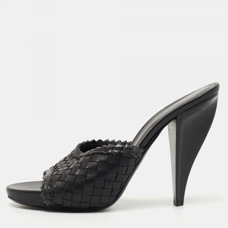 Pre Owned Bottega Veneta Black Intrecciato Leather Slide Sandals Size 40