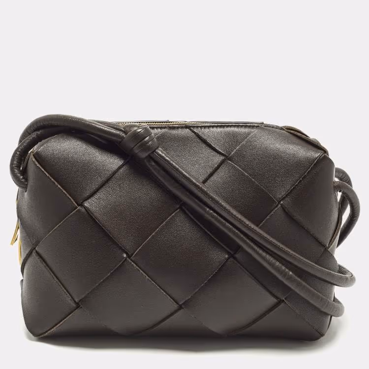 Pre Owned حقيبة كروس كاميرا بوتيغا فينيتا كاسيت جلد بني داكن صغير