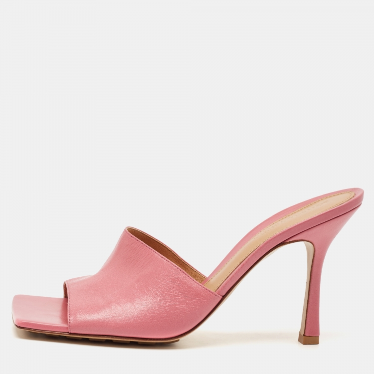 مملوكة مسبقًا صندل سلايد بوتيغا فينيتا مقدمة مربعة جلد زهري مقاس 40