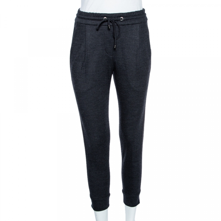 بنطلون رياضي برونيللو كوتشينيلي حرير وصوف رصاصي داكن حواف مزينة مقاس صغير جدًا - إكس سمول