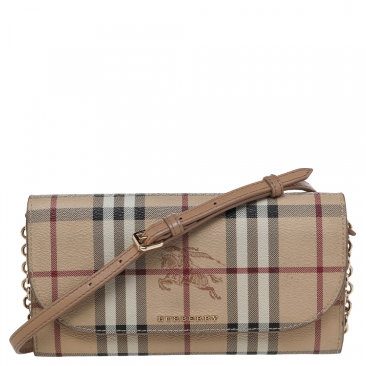 Pre Owned محفظة بسلسلة بربري هينلي كانفاس مقوى كاروهات هايماركت تشيك بيج