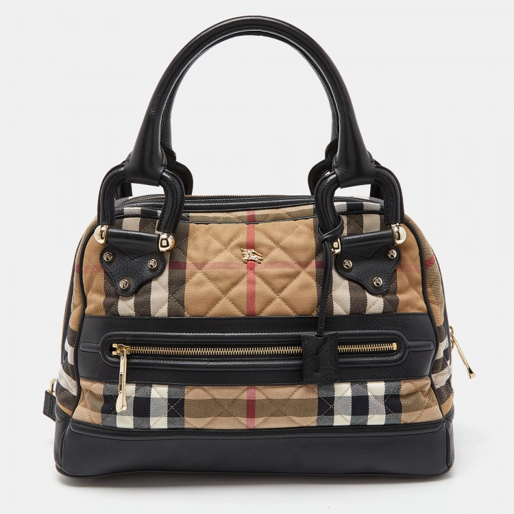 Burberry Beige/Black Quilted House Check Canvas and Leather Westbury Satchel