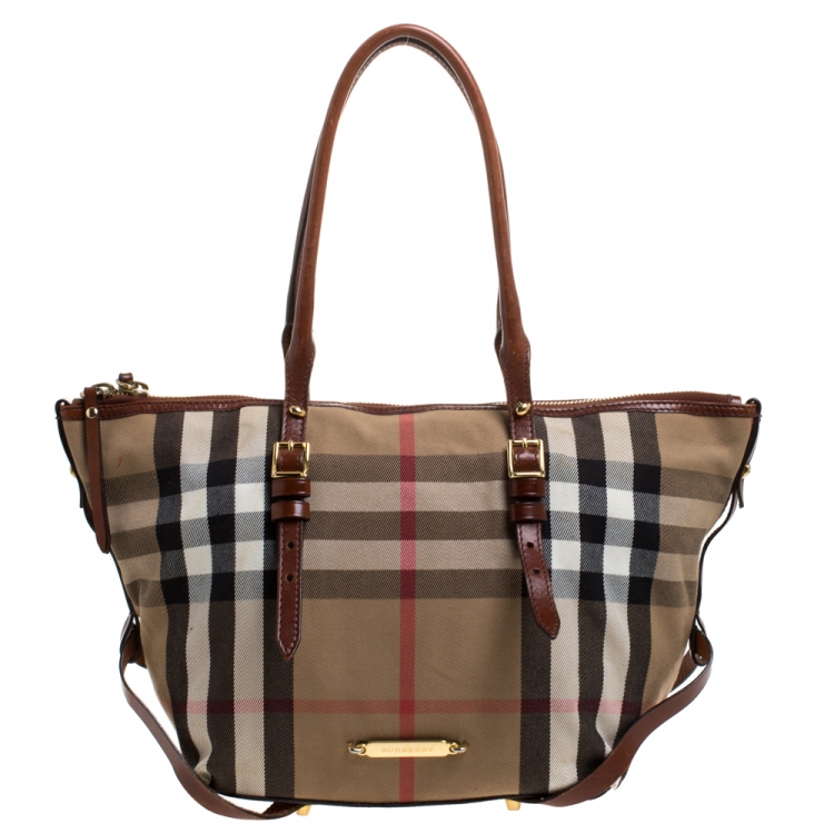 حقيبة يد بربري بريدال ساليسبوري صغيرة جلد و كانفاس مربعات هاوس بيج و بني فاتح