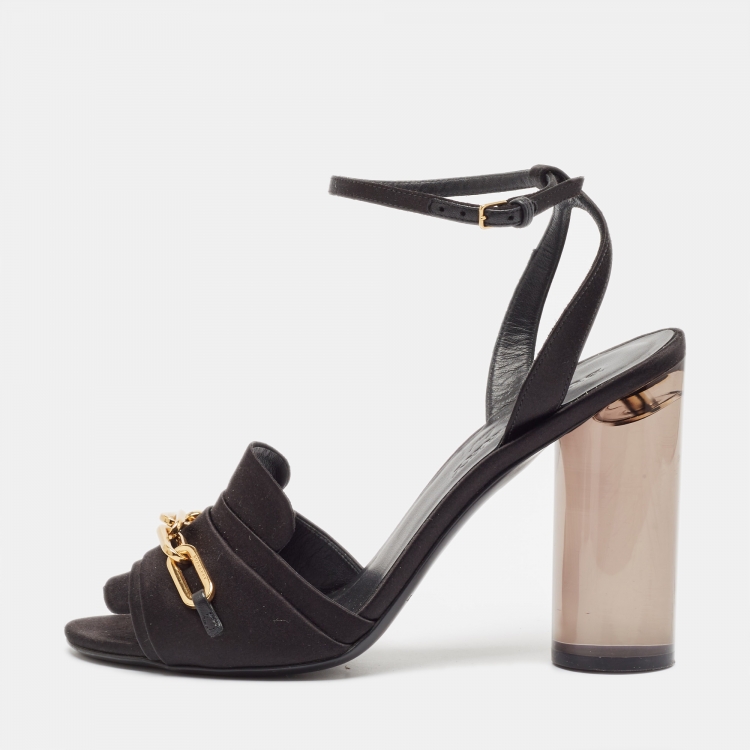 Pre Owned Burberry Black Satin Ankle Strap Sandals Size 40