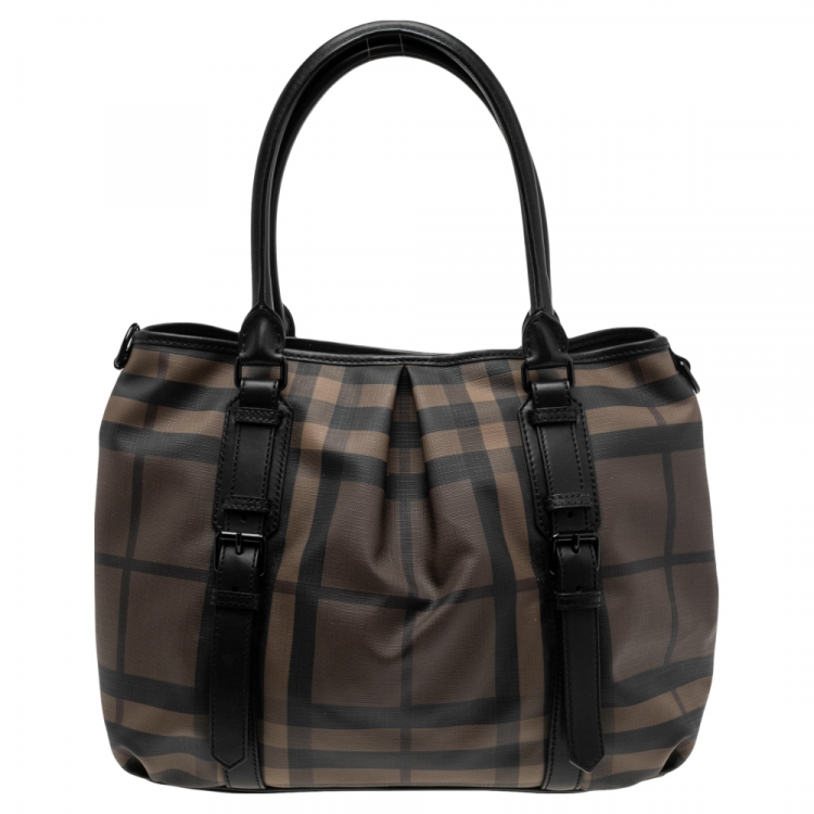 Pre Owned حقيبة يد توتس بربري نورثفيلد  جلد وبي في سي تشيك سموك أسود
