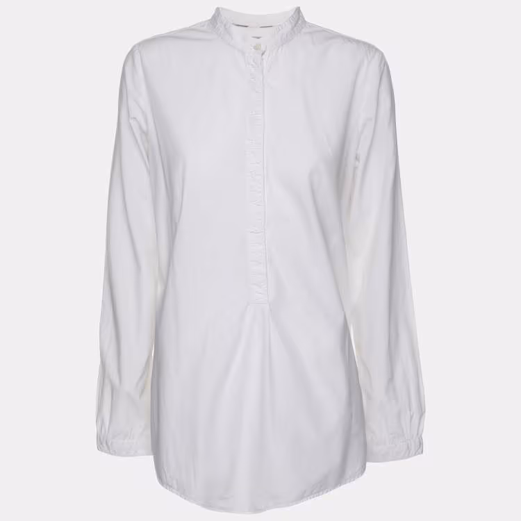 مملوكة مسبقًا بلوزة بربري بريت قطن أبيض أزرار أمامية مقاس صغير (سمول)
