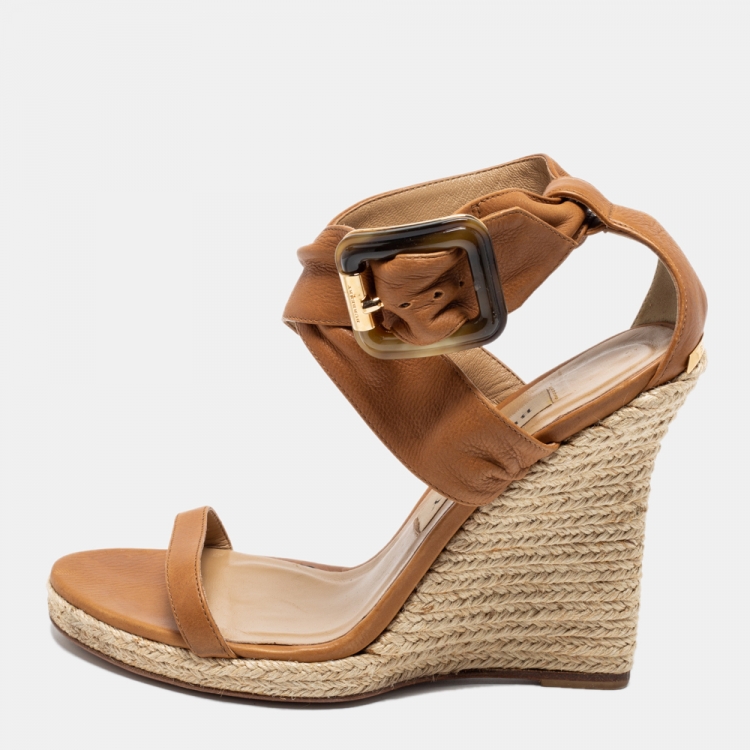 مملوكة مسبقًا صندل بربري كاتسبروك جلد بني كعب روكي إسبادريل مقاس 38.5