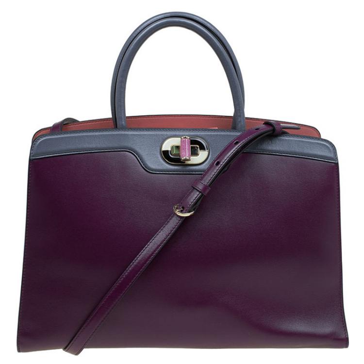 Pre Owned حقيبة يد بلغاري ايكونا متوسطة جلد رصاصية/ عنابية