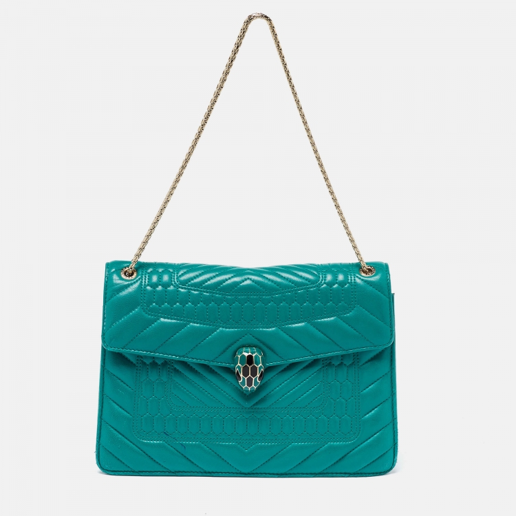 مملوكة مسبقًا حقيبة كتف بلغاري سيربتني فورإفر جلد سكاليج مبطن أخضر زيتوني متوسطة