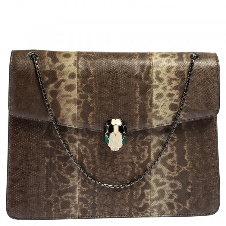 Pre Owned حقيبة كتف بلغاري سربنتي فوريفر كبيرة جلد كارونغ رصاصية
