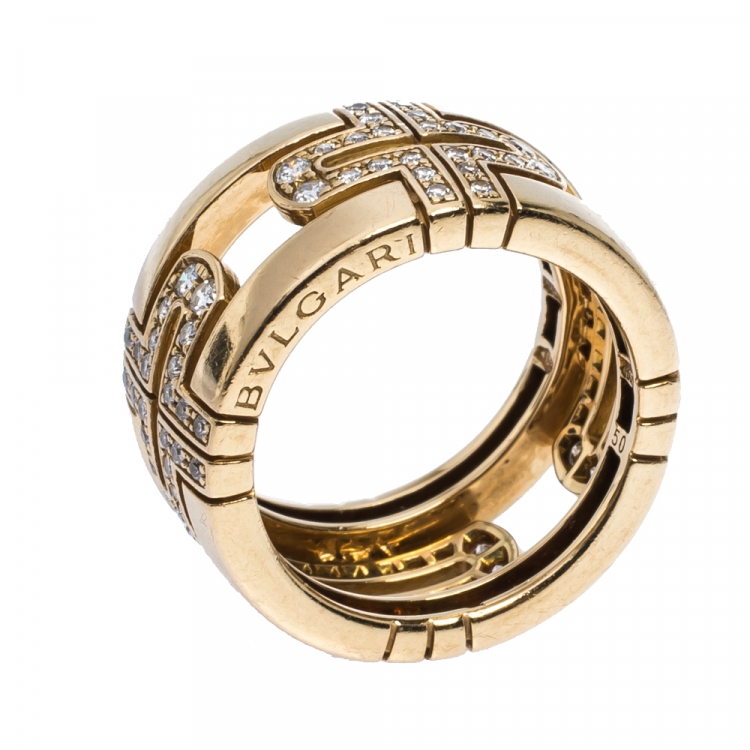 Pre Owned خاتم بلغاري بارنتسي عريض ذهب أصفر عيار 8 ألماس