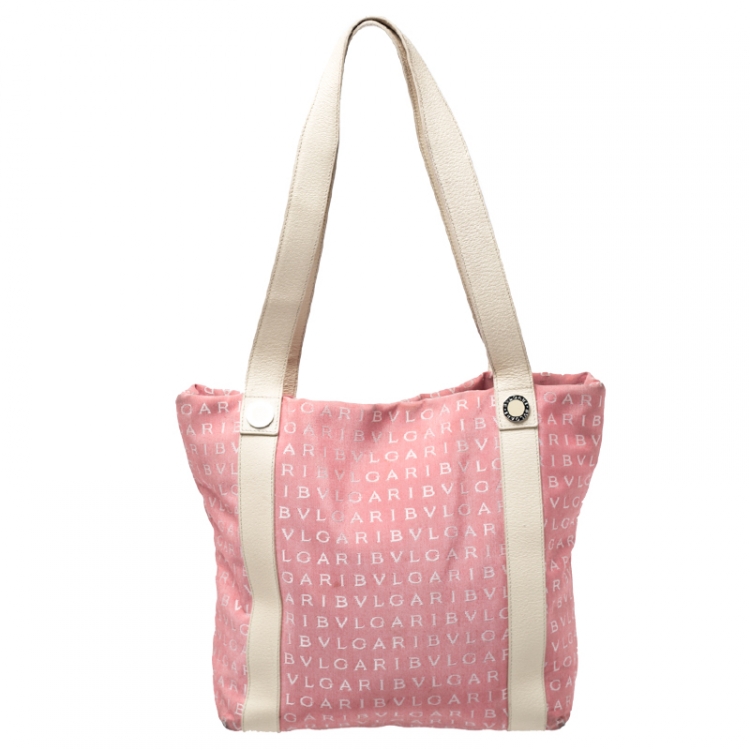 مملوكة مسبقًا حقيبة يد بلغاري كانفاس شعار الماركة مانيا و جلد وردي و بيج