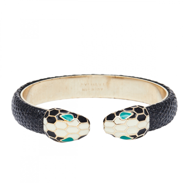 سوار بلغاري سيربنتي فوريفر معدن مطلي بالذهب و إينامل و جلد ميتاليك طراز مفتوح