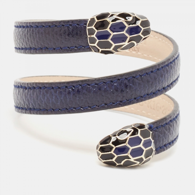 Bvlgari Serpenti Forever Navy Blue Leather Multi-Coiled Enamel Gold Tone Bracelet