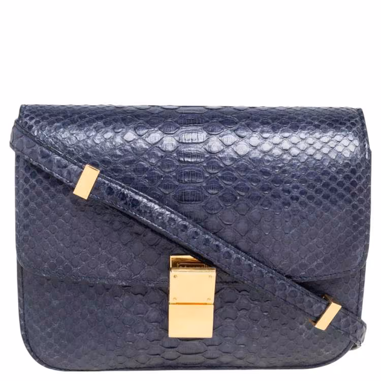 حقيبة كتف سيلين كلاسيك بوكس جلد ثعبان كحلي متوسطة