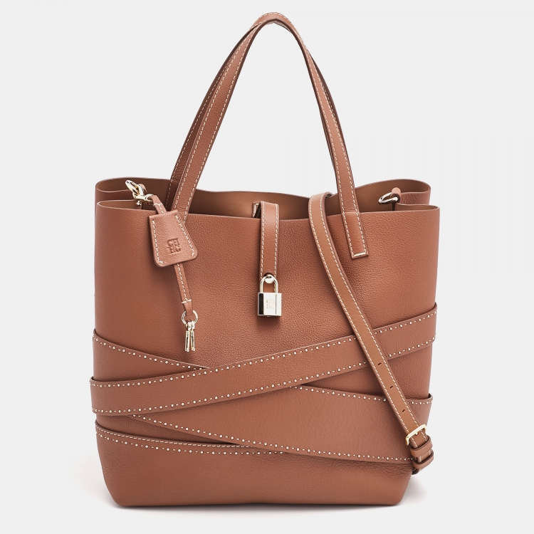 CH Carolina Herrera Brown Leather Medium Matryoshka Locked Shoulder Bag